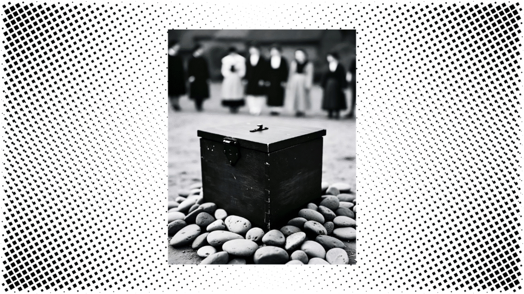 A pesar de su nombre, “La Lotería” no es un verdadero juego de azar, sino un sofisticado mecanismo social diseñado para legitimar un sistema de control impuesto. La participación es obligatoria y el proceso, al incluir a cada cabeza de familia, crea una “ilusión de participación democrática” que valida el resultado, sin importar cuán brutal sea. En el fondo, el ritual demuestra que las reglas del azar no son divinas ni aleatorias, sino que son determinadas y manipuladas por el hombre para encubrir un sistema de dominación. Este mecanismo de control se sostiene sobre un pilar aún más perturbador: la escalofriante normalidad del ritual, el principal método por el cual se mantiene el orden.